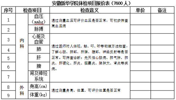 2.项目名称:安徽新华学院2021级新生入学体检项目