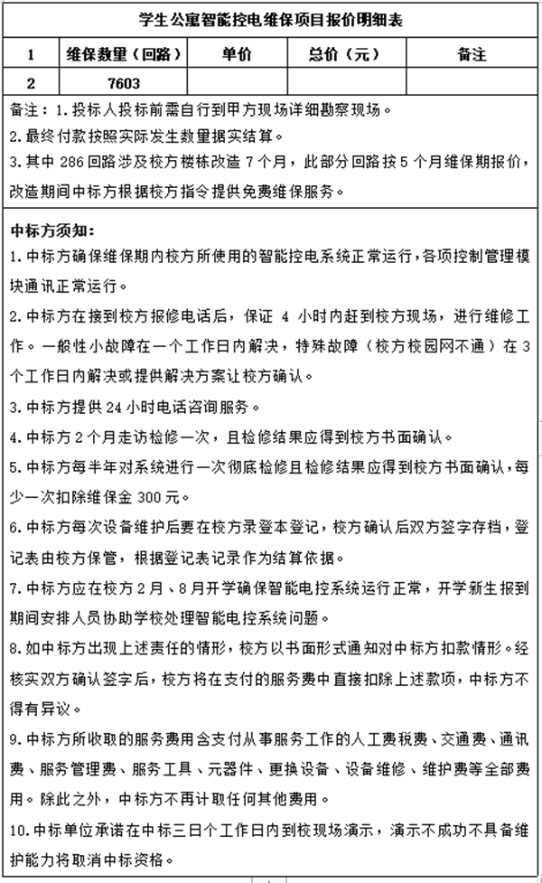 2.投标单位经营范围必须具有电子电器维修经营业务许可,并年检合格;