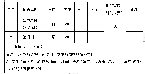 2、项目名称:学生公寓家具出售项目