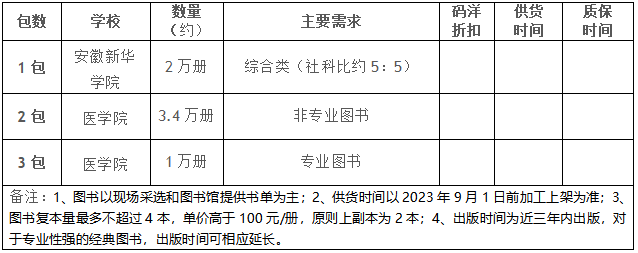 因单位建设需要,现对安徽新华集团旗下院校安徽新华学院、安徽医科大学临床医学院馆藏图书需求进行公开招标采购,欢迎全国范围内符合条件的供应商投标参与。