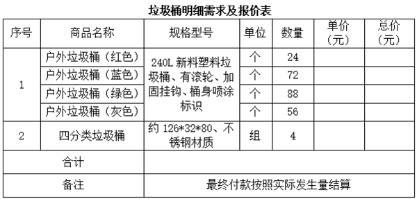 2.报价人应具备三年以上(包括三年)垃圾桶销售经验,投标产品需符合规格型号参数要求,所投产品品牌不限于同一品牌。