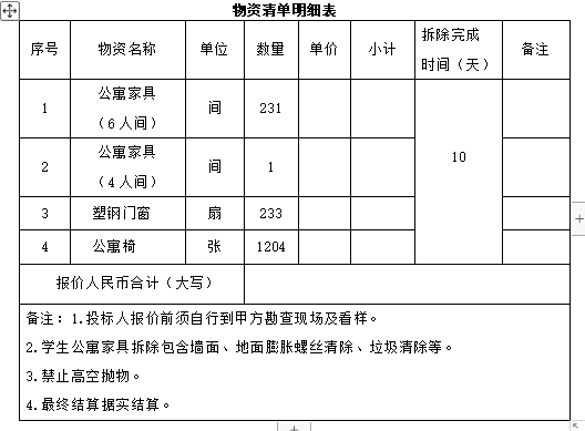 1.中标单位须在规定时间内完成拆除、搬运、清理工作。