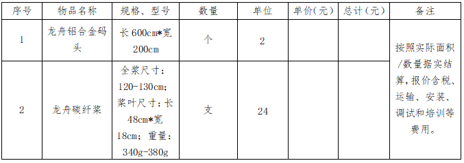 因单位需要,现对集团旗下院校安徽新华学院龙舟铝合金码头、龙舟碳纤桨采购项目进行询价采购,欢迎全国范围内符合条件的单位前来投标参与。