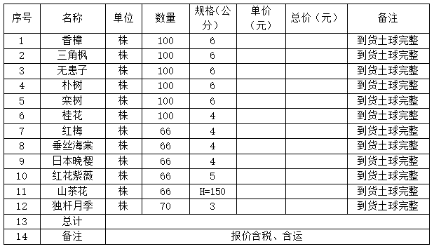 2.报价单位应具备三年以上(包括三年)苗木销售及栽种经验,具有可供考察的苗圃基地。