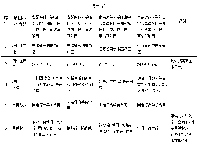 因单位需求,现对安徽新华集团总包、装饰、室外工程一审结算审计服务采购项目进行招标采购,欢迎全国有资质的供应商前来投标。