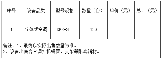 因旗下院校闲置资产处置需要,现出售一批空调设备,欢迎前来参与报价。