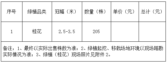 3.绿植品类、数量及冠幅详见下表: