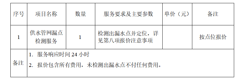 2.本项目仅为管网漏点检测,不承担修理工作;