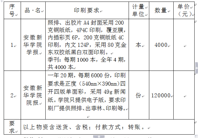 2、询价项目:安徽新华学院学报,院报。