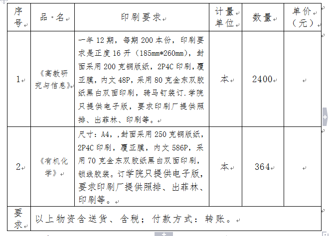 2、询价项目:《高教研究与信息》、《有机化学》