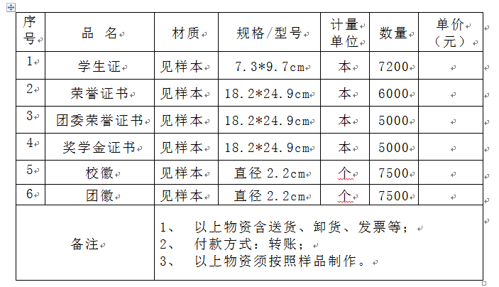 根据我校工作计划,现就学生证、荣誉证书、校徽等采购项目进行公开询价,欢迎符合条件的优质供应商积极参与。