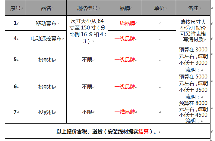 2、履行合同所需的任何项目若未有明确加在所列价款中,该部分有关费用应视作包括在投标报价之内(如运送、设计、调试安装等);
