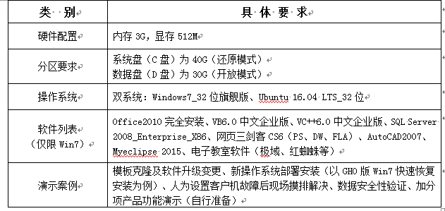 其中客户机要求部署环境具体如下: