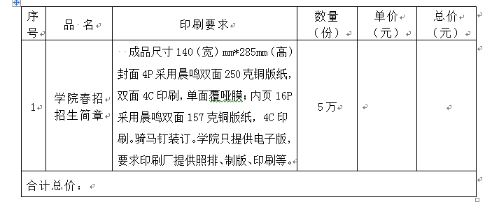 备注:打包要求,招生简章按100本打包。