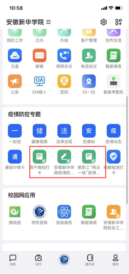 依据疫情防控需要,信息中心迅速响应,利用钉钉,先后搭建返校申请,疫情防控承诺书,每日健康打卡等线上流程,高效的完成相关数据收集,为学校时刻掌握师生的健康情况、行程轨迹提供管理抓手,并且为学校疫情防控科学研判提供数据支撑。