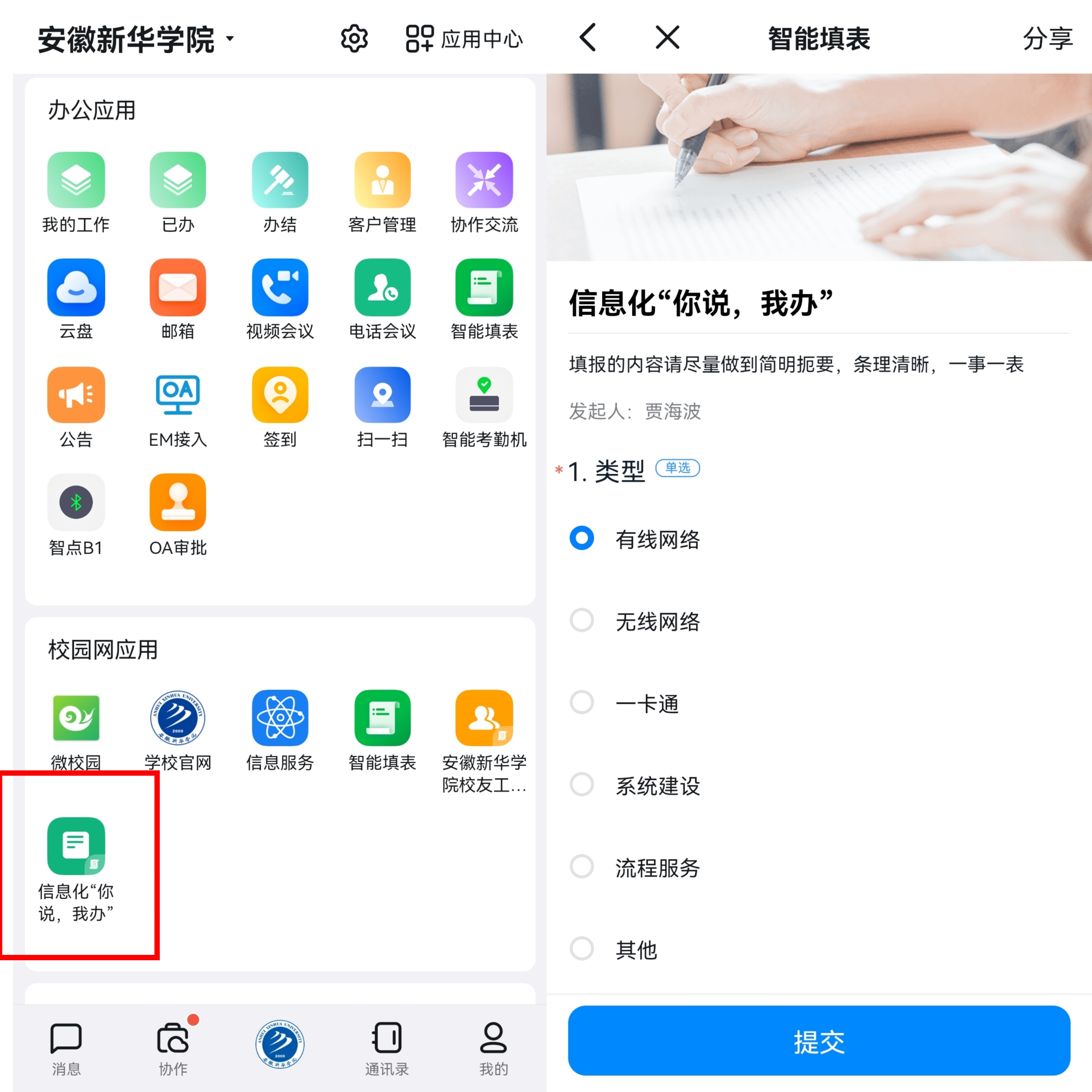 本网讯(通讯员:曲红)为贯彻落实《安徽新华学院学习贯彻习近平新时代中国特色社会主义思想主题教育工作方案》的要求,结合学习领会习近平总书记关于调查研究的重要论述,聚焦解决我校的突出矛盾和难点问题,信息化建设与发展中心于5月9日开始,常态化开展师生信息化“你说,我办”问题征集活动。