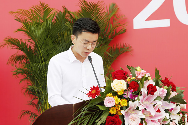 文化与新闻传播学院2017级学生齐汪顺在发言中给新生提出建议:要定好自己的学业目标,充满激情、意气风发的踏上新的征程,投身到更加具有挑战的生活中,同时要学会独立,相信自己,与伙伴们一起砥砺前行、挥洒青春、收获情谊。