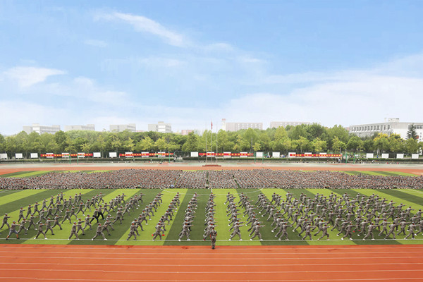 在军体拳和韵律操表演中,学生方阵整齐的动作、响亮的口号、柔美的舞姿引来在场观众的阵阵欢呼;军歌合唱,歌声铿锵有力、激荡人心,唱出了新生心中的激情和对未来生活的向往;教官精心准备的表演项目《武动乾坤》,动作流畅、气势如虹,赢得了大家的阵阵喝彩。