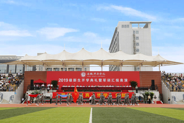 开学典礼上,校长石秀和代表学校向2019级新生的到来表示热烈欢迎,他希望每个新生都能发现新华故事,感受新华魅力,期待当代大学生能够明白大学之美,同时指出大学之美,美在使命担当;美在笃学创新;美在身心成长;美在自律自强。同学们要以家国天下的情怀,以天生我材必有用的信心,以舍我其谁的勇气,自觉把人生目标与祖国的发展、民族的进步紧密结合起来;学校也将着力培养大家的创新意识和创业能力,为将来在不同领域取得创造性的成就奠定基础;同学们要不断提升自己,“软硬件”配置同时发展,做一个朝气蓬勃,昂扬向上的新华人。