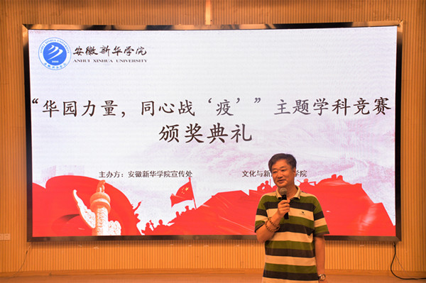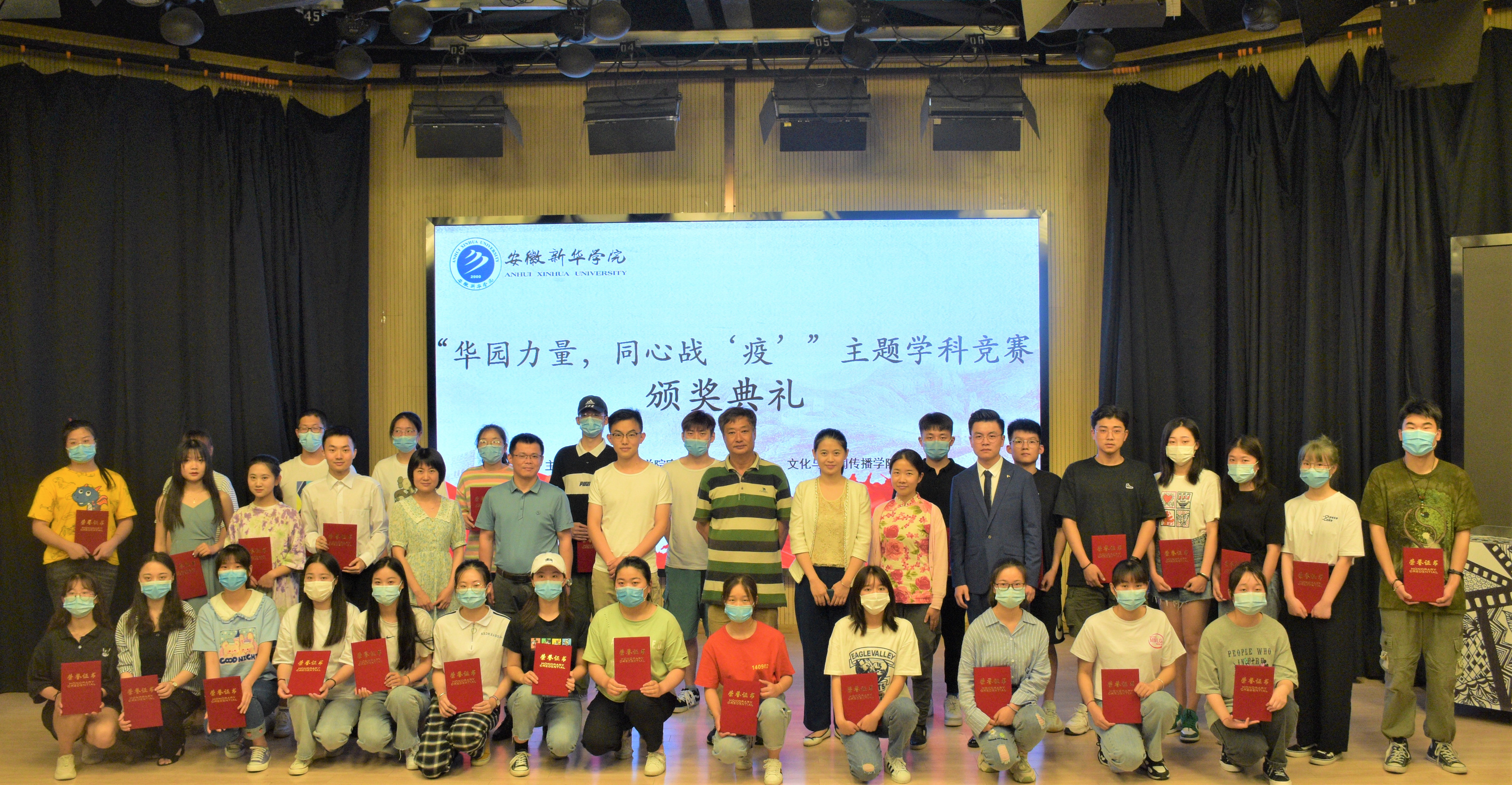 本网讯(通讯员:郑梦竹)6月8日,为了充分展现当代大学生“国家有难,匹夫有责”的爱国情怀和良好形象。安徽新华学院“华园力量,同心战疫”主题学科竞赛颁奖典礼在演播厅举行。出席颁奖典礼人员有文化与新闻传播学院院长何村,校宣传处副处长范文其,文化与新闻传播学院副院长洪玉、院长助理王鹏、艺术表演系副主任潘驰群、新闻系副主任张倩以及参赛选手代表。