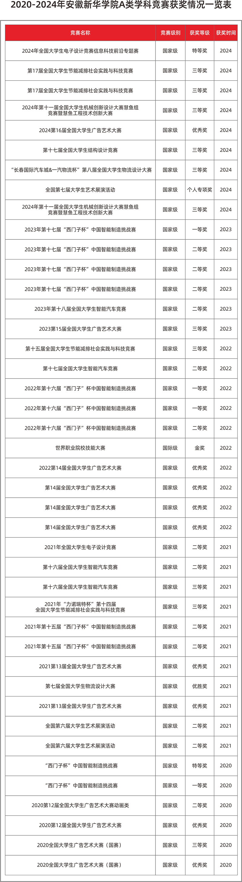 学校高度重视学生人文精神和实践能力的培养,积极鼓励学生参与各类学科竞赛,为学生搭建展示才华的平台,助力学生全面发展。学校大力实施学科竞赛“五更计划”,坚持“四年连贯”,实行“三个覆盖”,常态化开展学科竞赛系列活动,形成“以赛促教、以赛导学、以赛育人”的学科竞赛体系。近五年学校在A类学科竞赛中获奖颇丰,尤其是在中国国际创新大赛方面,我校累计获得省级及以上奖项135项,其中国家级银奖1项、国家级铜奖5项、省级金奖15项,涵盖乡村振兴、智能科技、文化创意、非遗传承及社会服务等领域。