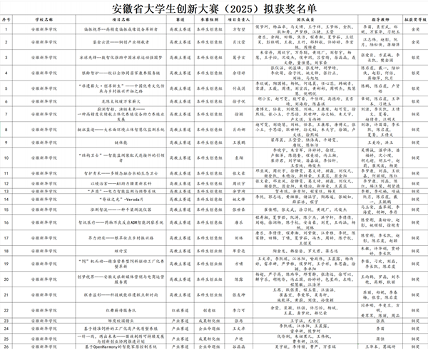喜报!我校师生共获安徽省大学生创新大赛(2025)金银铜奖26项