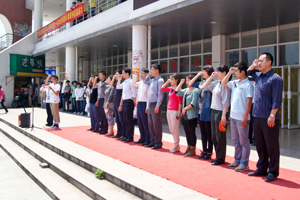 “我们是五月的花海,用青春拥抱时代;我们是初升的太阳,用生命点燃未来……”在嘹亮的团歌声中,宣誓仪式正式开始。学生处处长、校团委书记朱兆健发表了讲话,介绍了共青团在党的领导下为国家、民族事业努力奋斗90年的光辉历程,教导广大青年学生从自我做起,相互学习,相互交流,积极进取,不断加强自身政治理论学习,树立正确的理想、信念和价值观,充分发挥青年团员优势,为学校的迎评促建做出贡献。