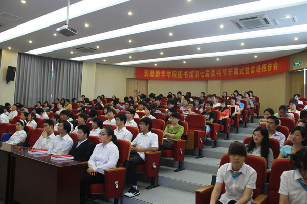 5月9日下午,安徽新华学院第七届读书节开幕式在学术报告厅举行。副院长杨世国教授、图书馆馆长费业昆教授、学报主编罗季重教授、科研处处长吕新生教授、高教所副所长朱永君出席了开幕式,中国科技大学杜进博士应邀作学术报告。部分教师、学生代表参加了开幕式。