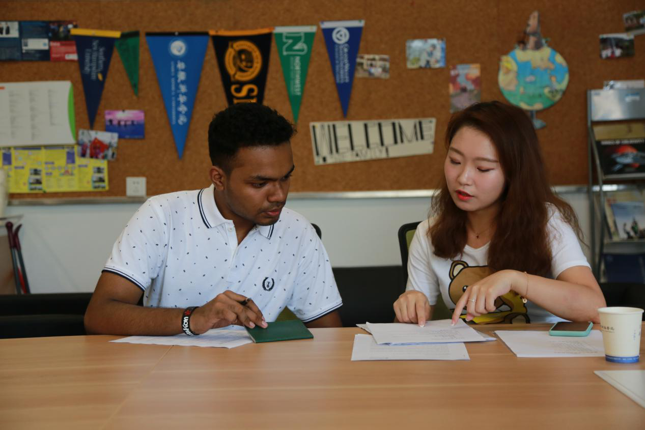 本网讯 (文:赵彩虹 摄影:金政)8月30日下午,我校迎来了建校以来的首位留学生Rahul Istiaq Ahmed,在我校国际交流合作处处长徐鸣、副处长赵倩青及相关教师的陪同下,Ahmed完成了在国际教育学院的报到流程。