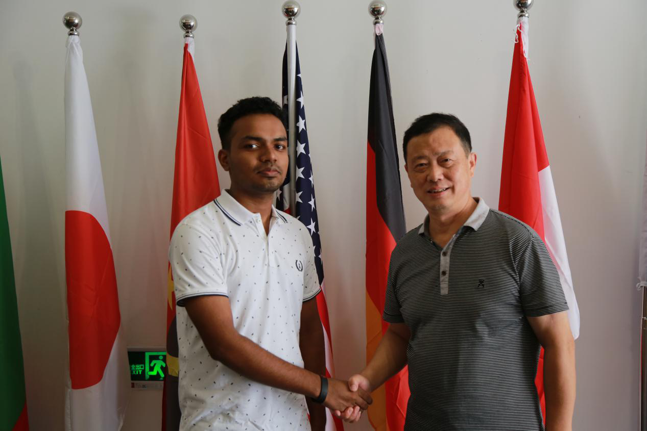 Rahul Istiaq Ahmed来自孟加拉国,此次来中国是为了学习汉语。报到期间,国际交流合作处对Ahmed的到来表示热烈欢迎,并向他详细介绍了学校在国际交流合作、项目开展等方面形成的办学特色以及相关入学报到流程。Ahmed介绍了自己的基本情况及学习经历,并感谢领导和老师的关怀和照顾,表示会尽快融入到学校新的学习环境中去,力争取得优异的留学成绩。