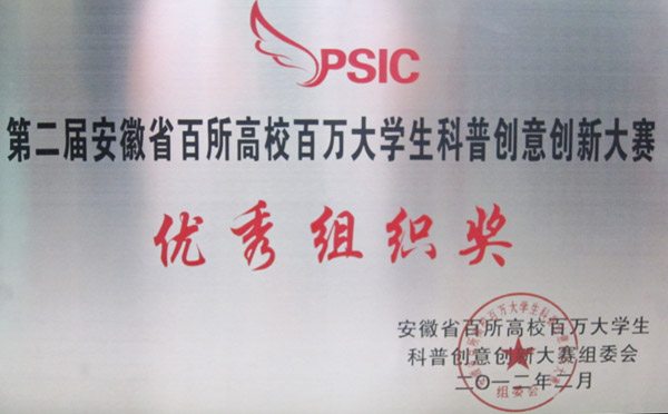 安徽省百所高校百万大学生科普创意创新大赛是经省政府全民科学素质领导小组批准,由省科协、省教育厅、共青团安徽省省委等单位共同举办的面向全省大学生的重要赛事。是省政府全民科学素质领导小组各成员单位为全面贯彻《中华人民共和国科学技术普及法》,深入实施国务院颁布的《全民科学素质行动计划纲要》和《国家中长期教育改革和发展规划纲要》的一项创新型工作,也是进一步增强高等学校和大学生开展科学技术普及的社会责任,营造更加浓厚的创新文化氛围,积极推进国家技术创新工程试点建设的一项基础性工程。自2010年至今已成功举办两届,我校均组织学生积极参与,2011,我校在第二届大赛中提交比赛作品64件,是2010年第一届大赛参赛作品的近3倍。第三届比赛即将拉开帷幕,我校将高度重视、加大宣传、总结经验、注重引导。力求取得新的突破。(文/王帆,审核/朱兆键)