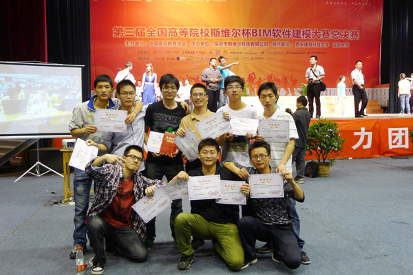 全国高校斯维尔杯BIM软件建筑信息模型大赛,由中国建设教育协会主办,深圳市斯维尔科技有限公司承办,旨在配合院校落实高校实训课程体系建设与实践教学,培养既符合国家发展要求又与社会实践相接轨的实用人才。同时,通过斯维尔BIM系列软件的应用,实现高校建筑类专业之间的BIM协同,增强学生实践与创新能力的同时,提高学生的团队协作能力。本次大赛为第三届全国斯维尔杯系列软件建模大赛,分为西安建筑科技大学和深圳大学两个赛区,我校被分在西安建筑科技大学参加第三届全国建模大赛总决赛,两个赛区来自全国100多所高校的160多支队伍在两天里同时进行了工程设计、造价、管理领域八大专项赛事的激烈角逐。