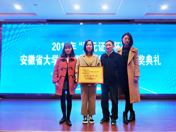本网讯(通讯员:张璐)11月7日,第三届“国元证券杯”安徽省大学生金融投资创新大赛颁奖典礼在蚌埠举行,我校财会与金融学院共有9支团队荣获全省一等奖,18支团队荣获二等奖,38支团队荣获三等奖,同时,我校喜获优秀组织奖,创学校在该项赛事中最好成绩,实现了历史性突破。校长助理兼财会与金融学院执行院长黄君婕带队参加颁奖典礼。