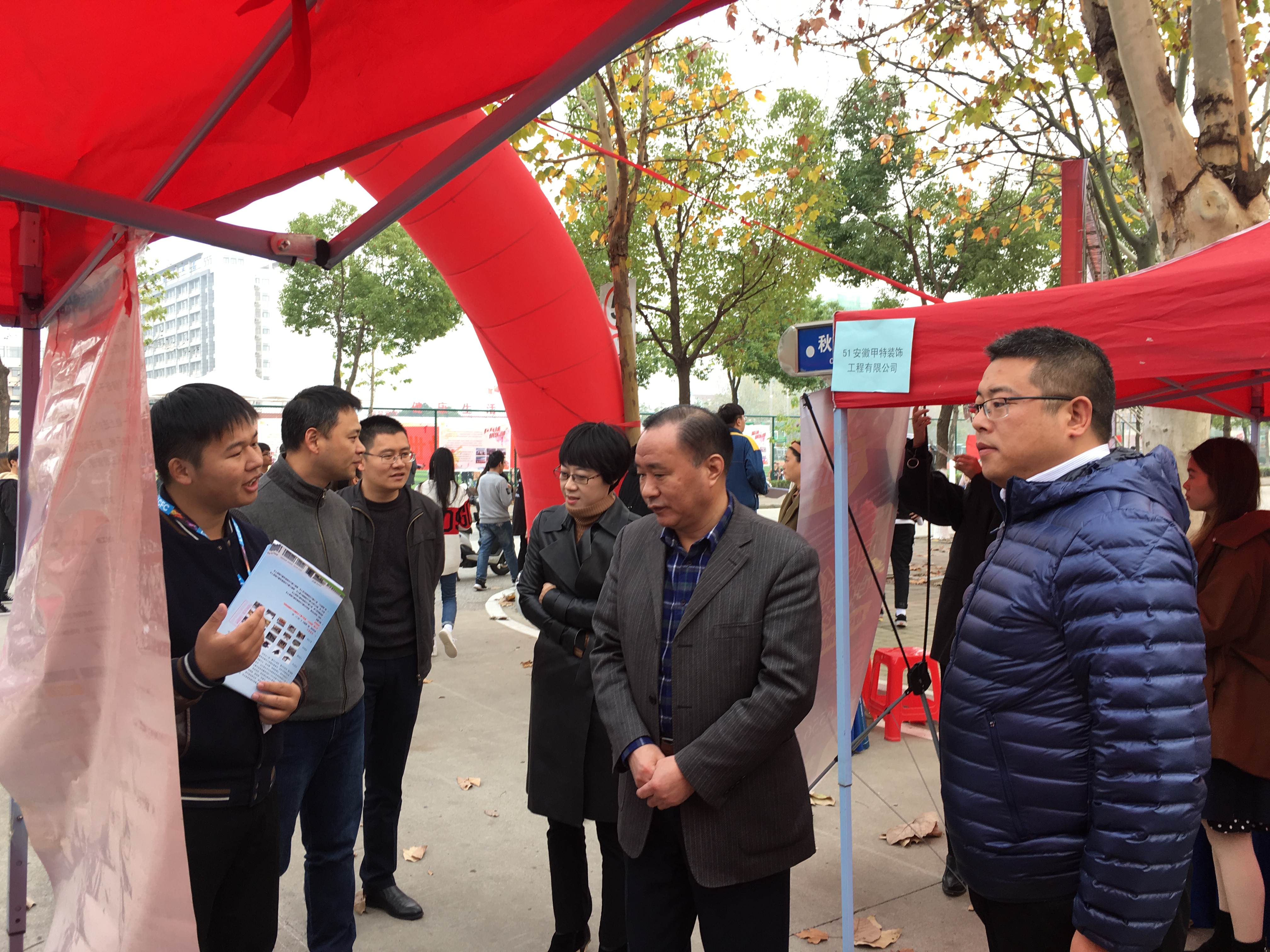 本网讯 (通讯员:龚欣)为进一步搭建毕业生和企业交流平台,为毕业生提供更优质的就业岗位,推动实现毕业生更高质量更充分就业,11月21日下午,安徽省高技能应用型毕业生就业市场成功在我校举办,省大中专毕业生就业指导中心主任袁江林、发展培训部部长王素苗在我校党委书记储国定、常务副校长王丽、副校长马琪等的陪同下深入现场指导并进行座谈交流。