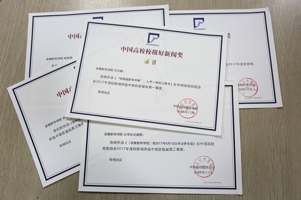 新媒体作品《“华园版新华字典”,人手一本的工具书》荣获好新闻新媒体类一等奖,校报毕业季专版荣获版面类二等奖,《做学生的知心人》荣获通讯类三等奖,《新四军建军80周年暨东进抗日图片展在我校开展》荣获消息类三等奖。