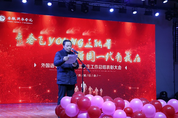 首先,张杰致开幕辞。他代表外国语学院全体教职工向学校的正确领导和大力支持致以诚挚的谢意。他对外国语学院在学生教育、管理、服务等方面开展扎实而富有成效的工作予以了充分的肯定,并对外国语学院教职工提出增强创新意识,打造特色品牌的新要求。表彰大会在恢弘大气的宣传片中拉开帷幕。