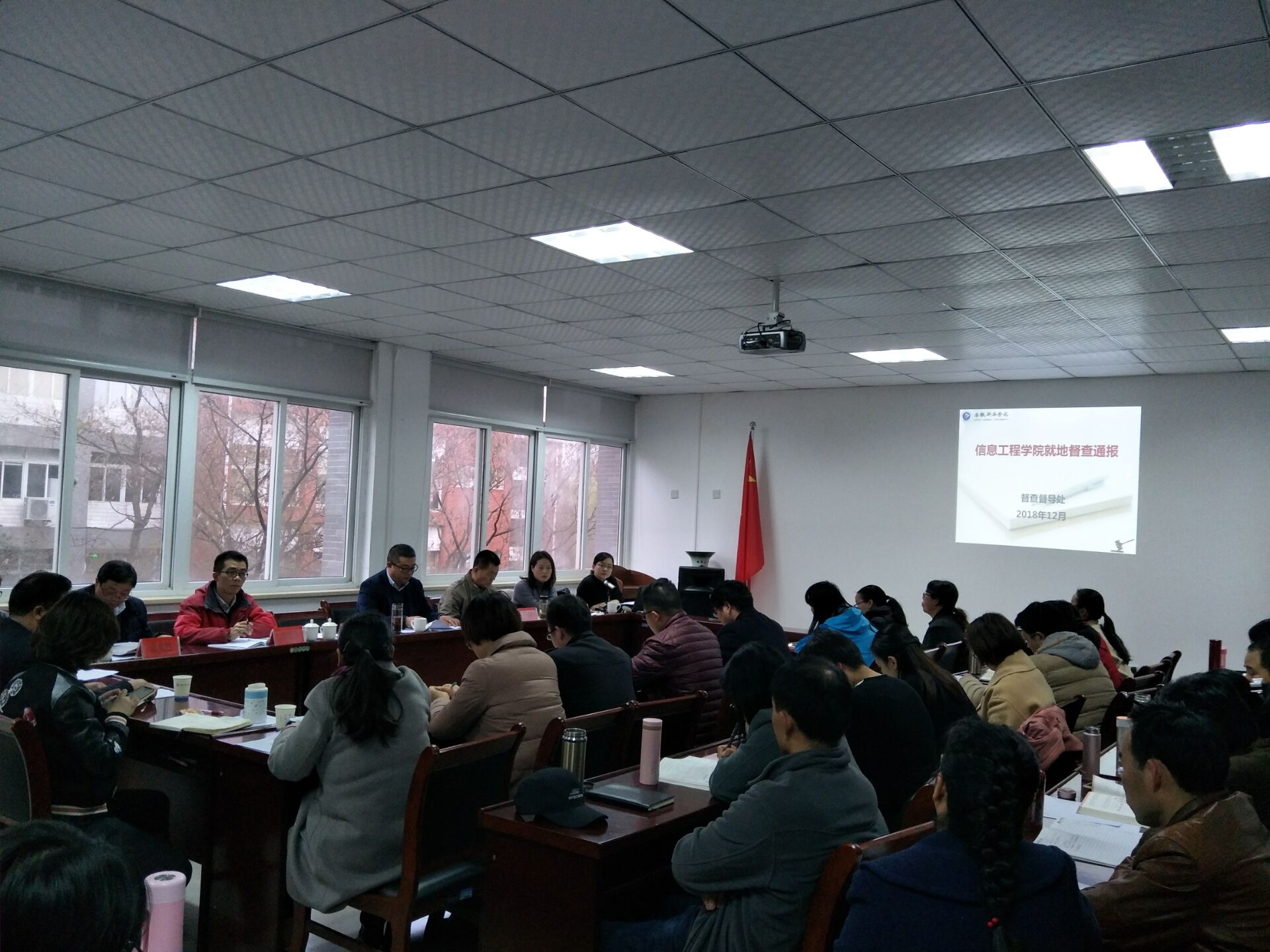 本网讯(通讯员:魏居娴)12月5日,我校就地审计督察通报会在信息工程学院召开。副校长马琪、校长助理方纯洁、督察处长徐志凤、相关职能处室负责人、督察办相关工作人员以及信息工程学院全体教职工参加了会议,会议由信息工程学院执行院长贺行佳主持。