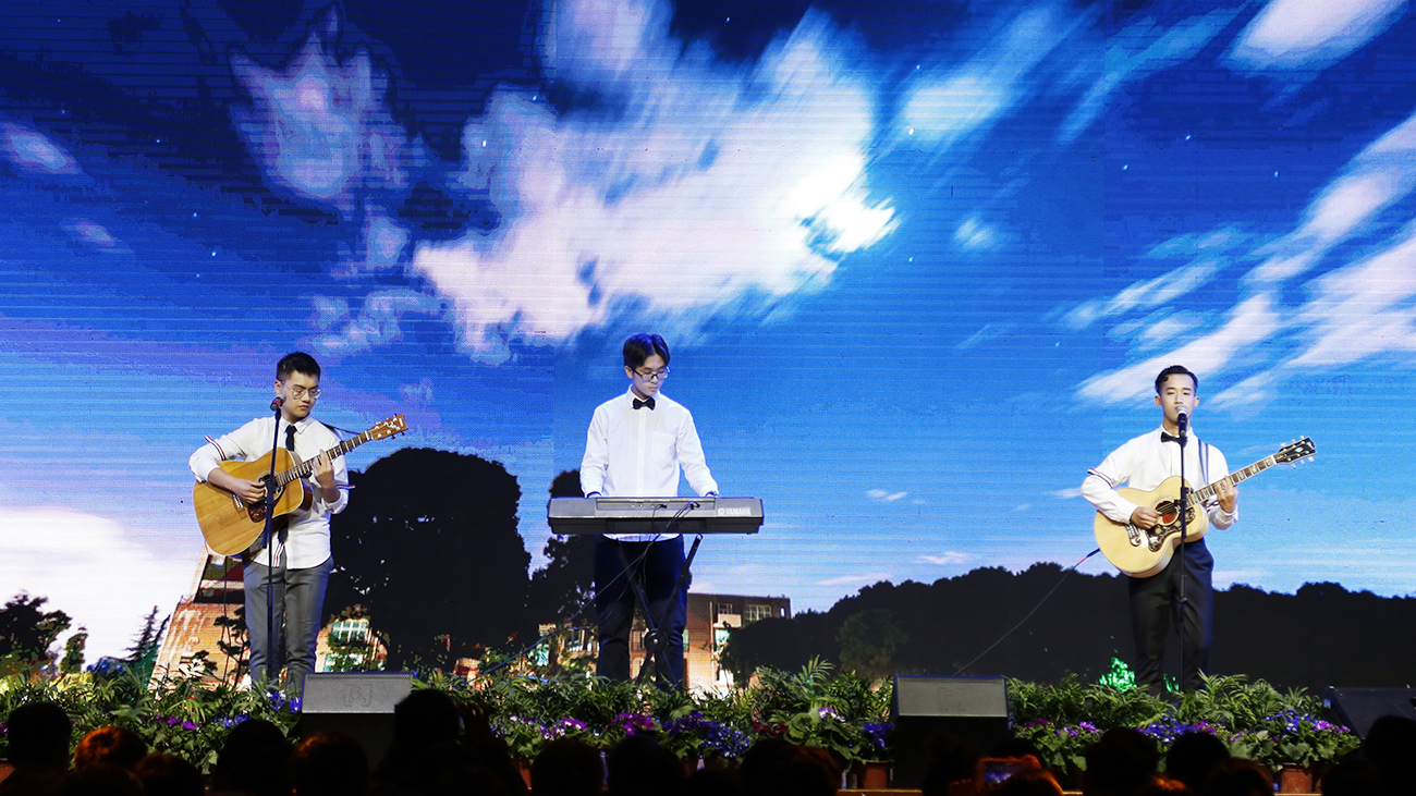 幕后导演登台,由教师贺行佳、杨光、窦梅朋、李武军带来的歌曲《向往》,将晚会推向高潮。