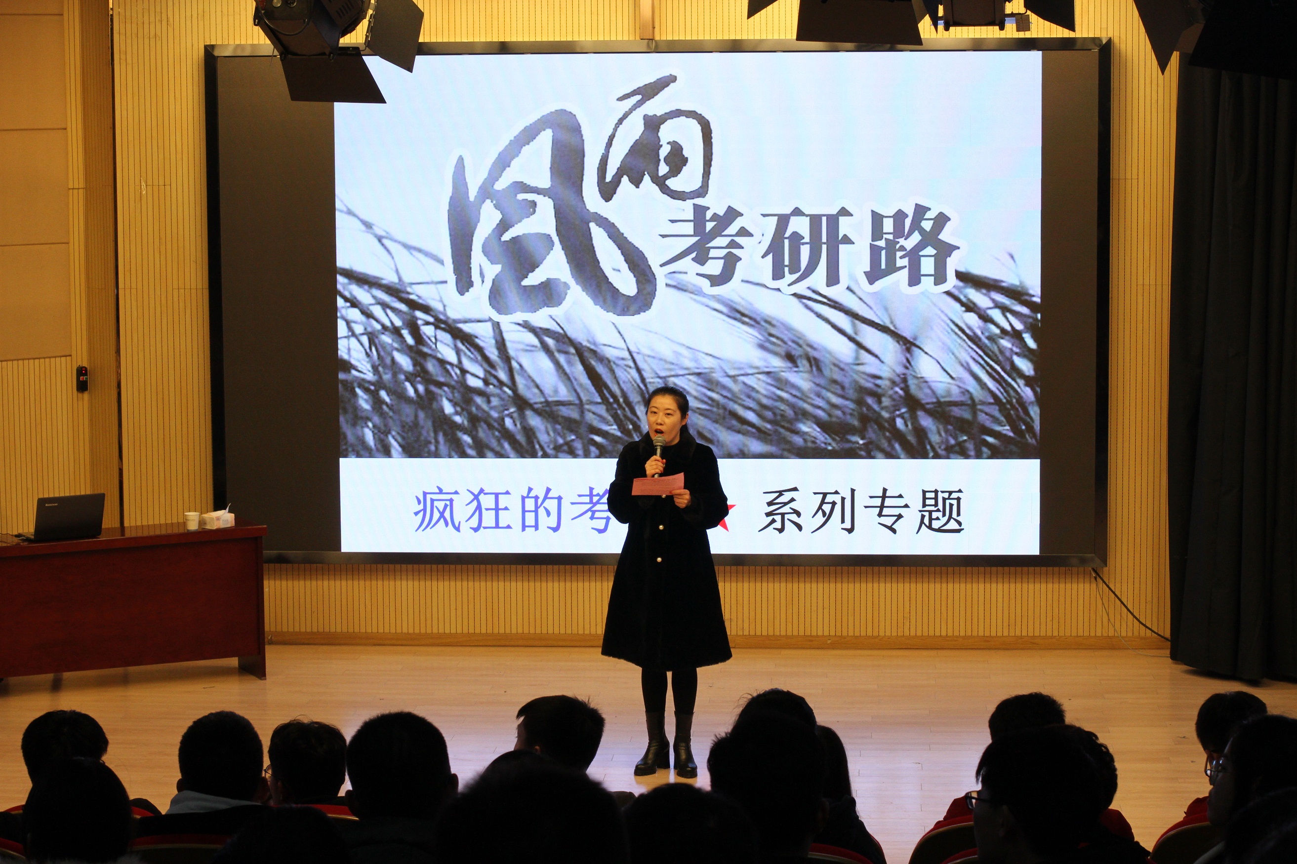 本网讯(通讯员:万玲)为帮助华园学子科学地选择考研院校,1月3日下午,华园考研辅导中心“筑梦2020——精准选择院校及专业课复习攻略”专题讲座在文传演播厅举行。校长助理陈义盛、科技学院执行院长孙成伟、二级学院本科毕业班辅导员、华园考研全体员工及600余名有意向考研的本科生聆听了讲座。