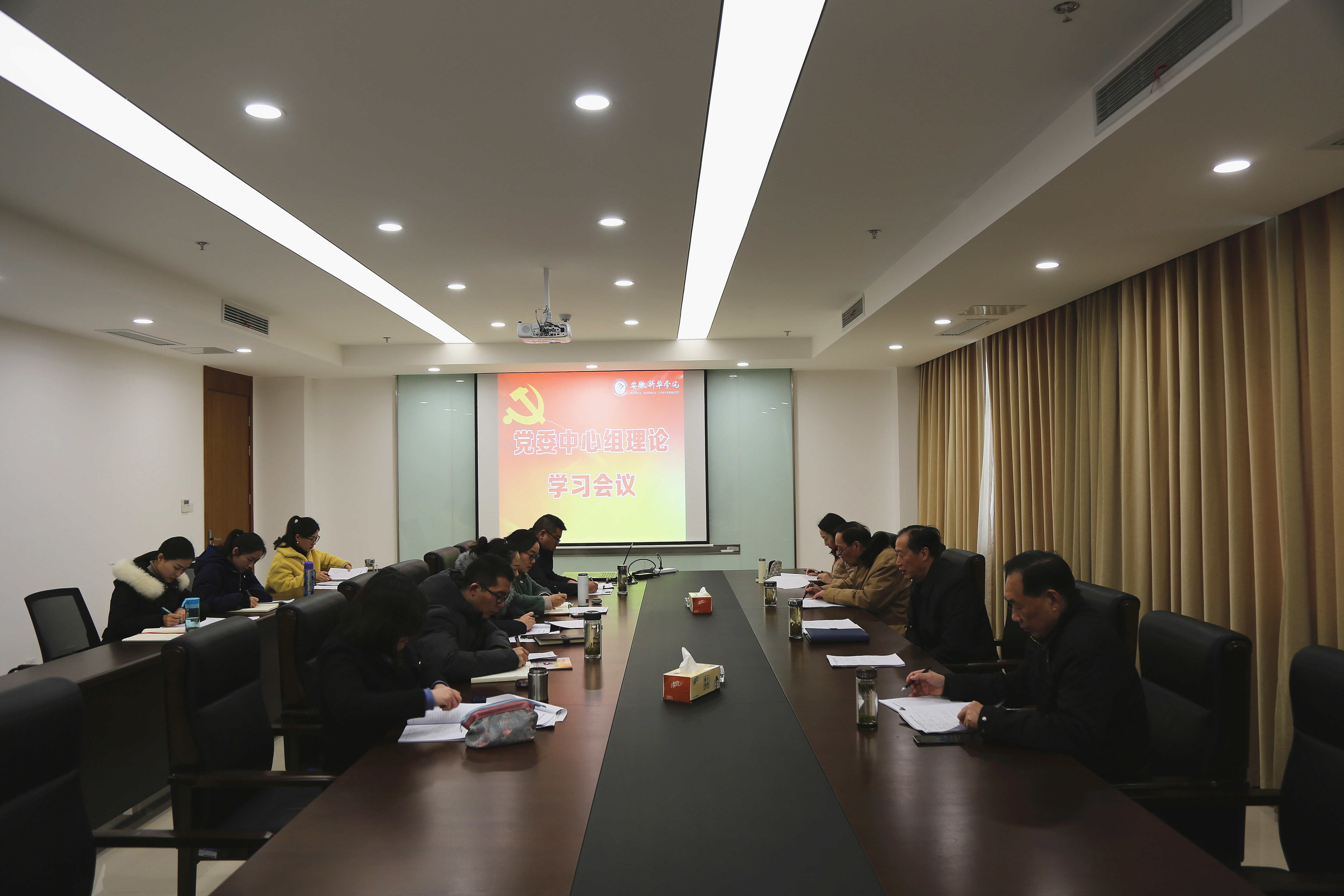 本网讯(通讯员:程颖)2月26日上午,校党委召开2019年度第二次中心组理论学习,学习习近平在2019年春节团拜会上的讲话、中共安徽省委组织部关于印发《认真学习借鉴北京市党建引领“街乡吹哨、部门报到”经验做法进一步做好我省城市基层党建工作》的通知、中共安徽省委关于坚持“三严三实”整治形式主义官僚主义突出问题的意见。省督导专员、校党委书记储国定,新华集团副总裁、校党委副书记王孝武,校长石秀和,常务副校长王丽,副校长杨世国、马琪,校长助理方纯洁,党委委员黄君婕等参加了会议,会议由储国定主持。