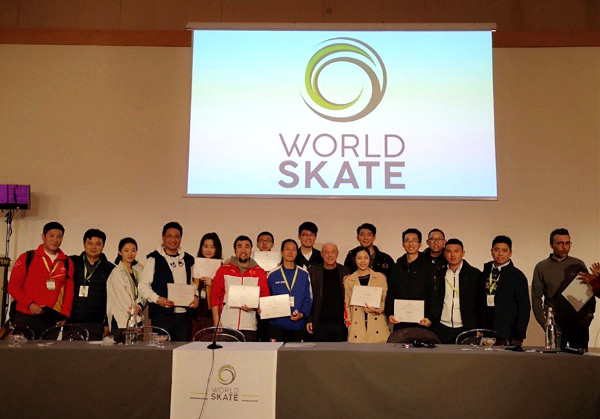 此次研讨会主要包括速度轮滑和单排轮滑球两个项目,分为速度轮滑裁判员班、教练员班、单排轮滑球裁判员班、教练员班四个培训班,共有来自世界各地200余人参训。张爱臣顺利完成各项学习内容,在理论、实践、考核、交流等各个学习环节中,展现了较高的理论水平和体育素养,受到一致好评,顺利获得结业证书。