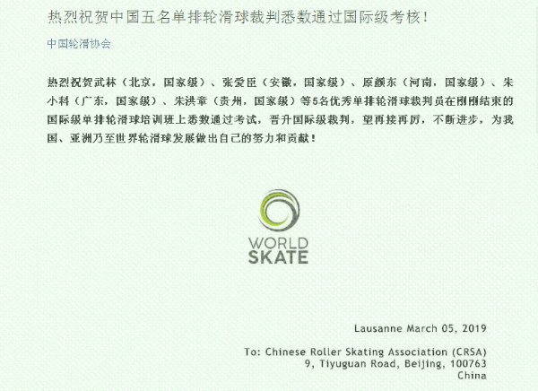 在研讨会召开之际,张爱臣经中国轮滑协会推荐参加单排轮滑球晋升国际级裁判员考核,内容包括语言、规则、临场执裁能力等项目考核。近日,在国际轮滑联合会公布的新晋国际级裁判员名单中,中国代表团有7人获得国际级裁判员称号,其中有2名速度轮滑项目和5名单排轮滑球项目(包括张爱臣老师)的裁判员成功晋级国际级。