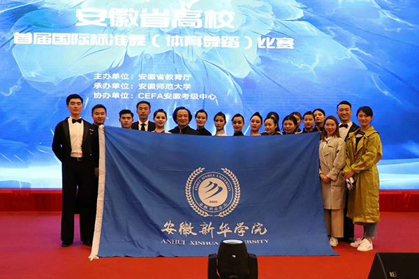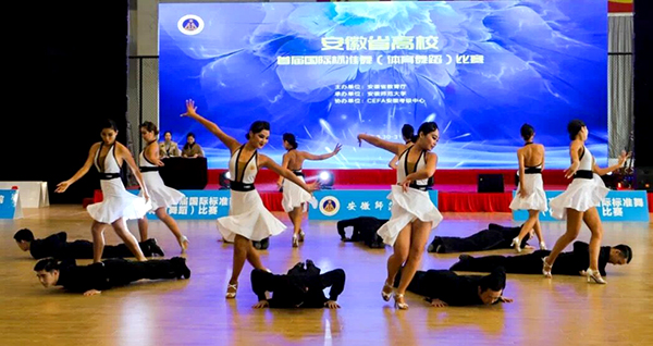 本网讯 (通讯员:闫井明)近日,由安徽省教育厅主办、安徽师范大学承办的安徽省高校首届国际标准舞(体育舞蹈)比赛在安徽师范大学花津校区体育馆举行。我校闫井明、牛曼兰、汪新新老师指导的学生代表队荣获单项冠军以及其他多项荣誉。