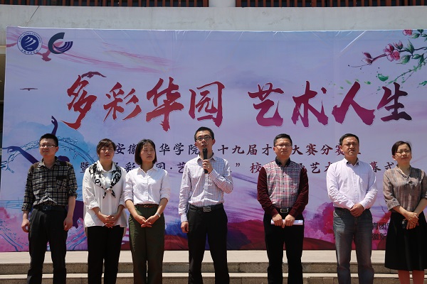 本网讯 (通讯员:黄梦) 为弘扬时代主旋律,提升校园活动品牌和质量,培养和提高青年学生的文化品位和艺术修养,展示青年大学生的良好精神风貌,4月18日,我校“多彩华园·艺术人生”校园文化艺术节开幕式在翰林广场举办,本次活动由校团委主办,艺术学院承办。副校长方纯洁,学生处处长、团委书记贺行佳,学生处副处长王飞,相关职能部门、各二级学院行政负责人及学生代表参加开幕式,开幕式由王飞主持。