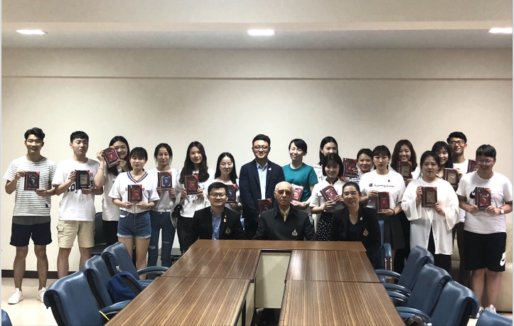在泰期间,研修团先后参观了大皇宫、卧佛寺、芭堤雅等泰国著名景点,让同学们深刻体会到了泰国深厚的文化底蕴与热带风情。5月4日,正值“五四”运动100周年纪念日,研修团在芭堤雅格兰岛海滩,手举中国国旗,唱响《五月的花海》,外国友人纷纷拍照留念。