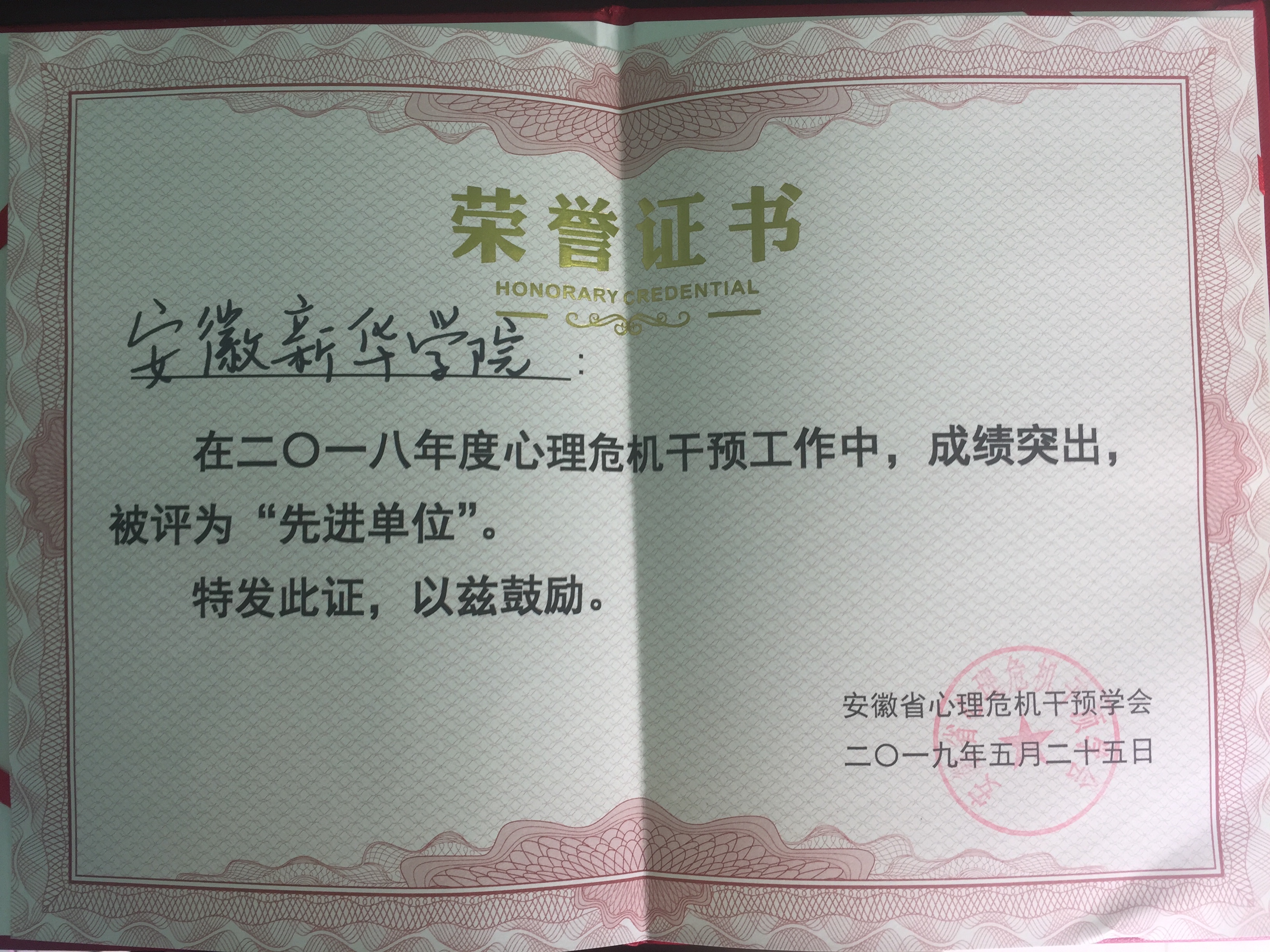 我校获评安徽省心理危机干预工作先进单位