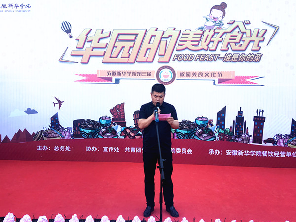 本网讯(通讯员:董梅)为弘扬中华美食文化,丰富大学生课余生活,提倡绿色、健康、节约的饮食理念,同时为给广大师生提供一个沟通与互动的平台,让师生们在工作和学习之余放松心情,我校特于5月29日举办“安徽新华学院第三届美食文化节”活动。副校长陈义盛出席开幕式并致辞。