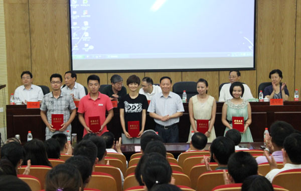 7月6日下午,我校2012年新教职工岗前培训学员结业典礼在学术报告厅召开,集团公司领导、校领导出席典礼。新教职工畅谈了自己的工作感受和职业规划,会议颁发了参训学员的结业证书、优秀学员、最佳班委和最佳支持奖证书。