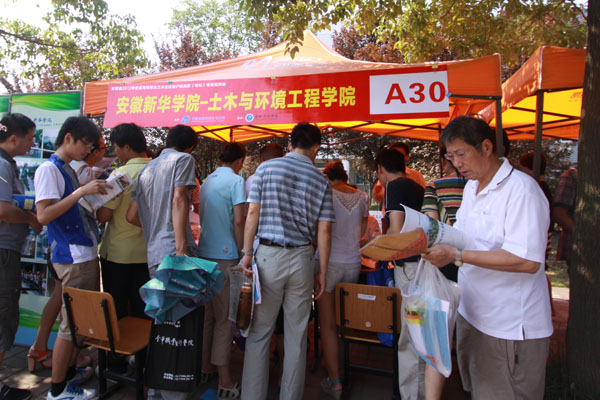 今年的咨询会现场,安徽新华学院的人才培养模式、大学生素质教育、国际教育等方面受到广泛好评,考生及家长的积极问询相关情况。教务处派出专门的工作人员现场提供咨询服务。各二级学院院长、学科带头人,教授、博士们不畏炎热的天气,耐心解答考生和家长们的每个问题。一位来自蚌埠的小姑娘在我校药学院咨询展台前详细询问制药类专业的课程开设情况,药学院刘金旗教授细心解答。一位文科专业的男生来到文化与新闻传播学院展台前询问新闻采编与制作专业的有关情况,在得到满意的答复后表示一定填报我校。土木与环境工程学院展台前,一位立志建高楼大厦的男生仔细询问土木工程专业的实习、就业等问题,在得到解答与家长一同讨论后说:“我觉得新华的这个专业挺好的,就报这个。”一大批女孩子聚集在商学院展台前询问财务管理专业的分数线。外国语学院的任静生教授一边擦汗一边向一位女生介绍英语本科专业的课程设置特点。