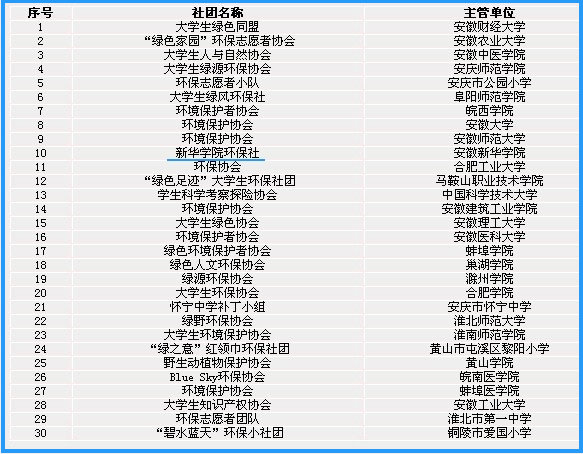 安徽省“保护母亲河行动”优秀环保社团名单(排名顺序不分先后)